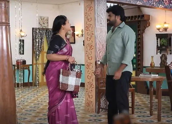 விஜய் டிவியில் ஒளிபரப்பாகும் ‘சிறகடிக்க ஆசை’ சீரியலில் அண்ணாமலை, முத்து மீது இருந்த கோபத்தில் தான் வீட்டை விட்டு வந்தாயே? வேற என்ன பிரச்சனை? நீ ஏதோ மறைக்கிறாய் என்றார். ஆனால், மீனா உண்மையை சொல்லாமல் ஒன்றும் இல்லை என்று சமாளித்தார். அதற்கு பின் ரோகிணி ஃபோன் செய்து மீனாவை வர சொன்னார். ரோகினி, உன்னுடைய அம்மாவிடம் எதுவும் சொல்லவில்லை தானே என்றார். அதற்கு மீனா, நான் எதுவும் சொல்லவில்லை. ஒழுங்கு மரியாதையாக உண்மையை சொல்லவில்லை என்றால் […] The post மீனாவின் ரீ என்ட்ரியால் கதிகலங்கி போன ரோகினி, அண்ணாமலை சொன்ன வார்த்தை – சிறகடிக்க ஆசை appeared first on Tamil Behind Talkies .