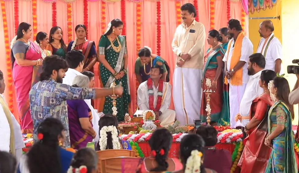 தமிழ் சின்னத்திரையில் சன் டிவியில் ஒளிபரப்பாகி வரும் சீரியல்களில் ஒன்று மூன்று முடிச்சு.நந்தன் சி முத்தையா இயக்கத்திலும், அ.அன்பு ராஜா, அ.சுரேஷ் பாபு தயாரிப்பிலும் ஒரு அழகான கிராமத்து கதை களத்துடன் இந்த சீரியல் உருவாகியுள்ளது.இதுவரை எந்த ஒரு சீரியலிலும் இல்லாத அளவிற்கு இயற்கை பொருந்திய லொகேஷன் அமைந்துள்ளது. நேற்றைய எபிசோடில் கல்யாணம் சூர்யாவை எழுப்பி கீழே கால பைரவர் வச்சு பூஜை எல்லாம் பண்றாங்க என்று சொல்லி அழைத்து...