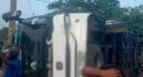 A bus carrying about 60 students overturned after an accident in Telangana’s Rangareddy district, police said. Several students were injured